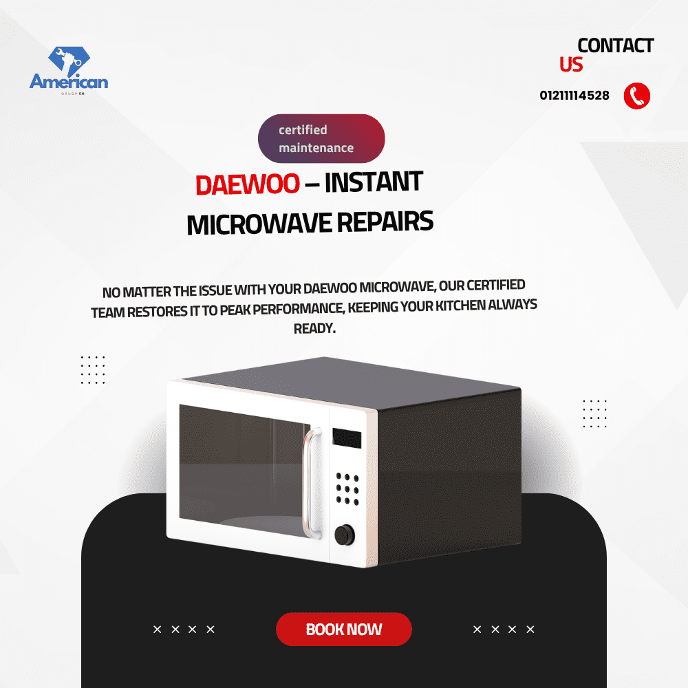 Our Daewoo Egypt Microwave Maintenance Center is your official destination for fast, reliable, and affordable microwave servicing. From cleaning the unit properly to replacing faulty components and diagnosing advanced electrical issues, our skilled technicians are trained to handle it all. We also offer full home service, saving you the trouble of transporting the appliance. Backed by Daewoo customer service and a warranty on all spare parts, our team ensures your microwave is restored to optimal performance. Just call 01211114528 to schedule your visit and receive professional support, tailored to your device’s needs.